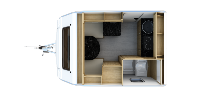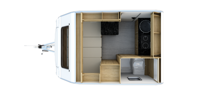 O modelo mais recente das nossas caravanas, construído com painéis sanduiche isolados, é uma combinação do modelo N-Cross e do modelo menor da Sprint.