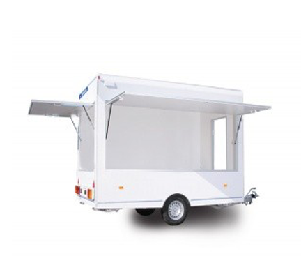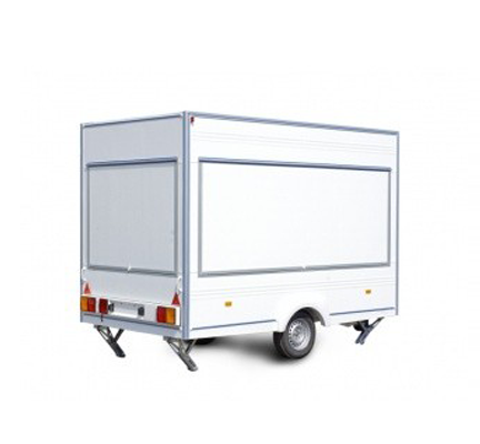 Reboque conhecido como loja sobre rodas. Tem balcão, prateleiras, instalação elétrica interna 12/230 confortável, estético e funcional. Qualquer um pode equipá-los a si mesmo de acordo com as suas necessidades. Os materiais utilizados para o acabamento interior são de saneamento certificadas.
