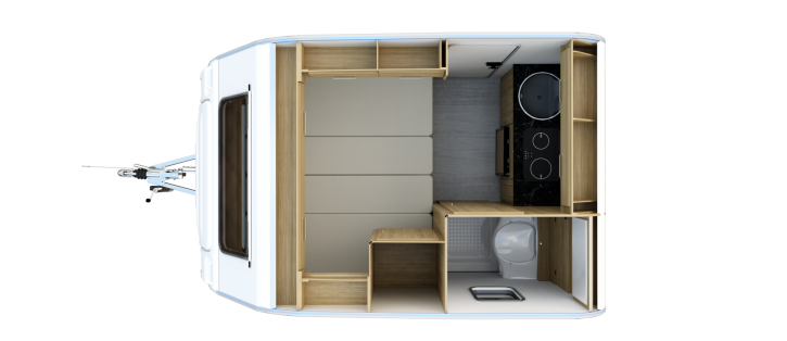 O modelo mais recente das nossas caravanas, construído com painéis sanduiche isolados, é uma combinação do modelo N-Cross e do modelo menor da Sprint.