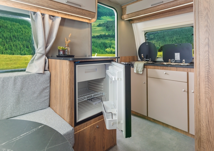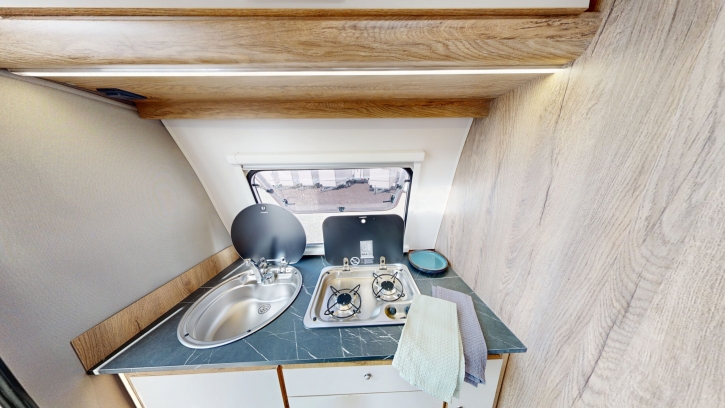- Fogão a gás Dometic de 2 bicos com lava-loiças thetford;